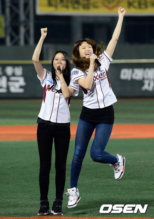 12일 오후 서울 목동구장에서 열린 '2013 한국야쿠르트 세븐 프로야구' 넥센 히어로즈와 삼성 라이온즈의 경기, 다소니가 공연을 펼치고 있다.
