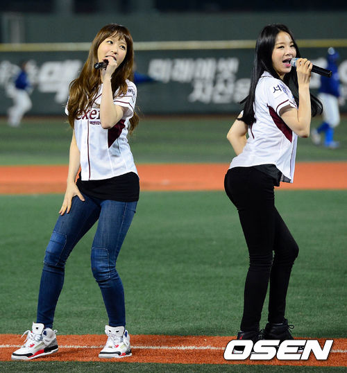 12일 오후 서울 목동구장에서 열린 '2013 한국야쿠르트 세븐 프로야구' 넥센 히어로즈와 삼성 라이온즈의 경기, 다소니가 공연을 펼치고 있다.