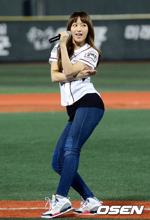 12일 오후 서울 목동구장에서 열린 '2013 한국야쿠르트 세븐 프로야구' 넥센 히어로즈와 삼성 라이온즈의 경기, 다소니가 공연을 펼치고 있다.