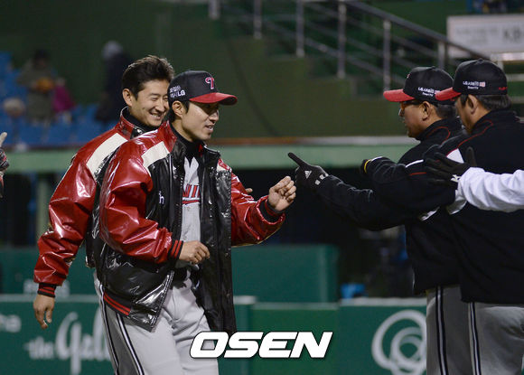LG는 12일 대전구장에서 열린 ‘2013 한국야쿠르트 세븐 프로야구’ 한화와 올 시즌 첫 경기서 6-1로 승리했다.