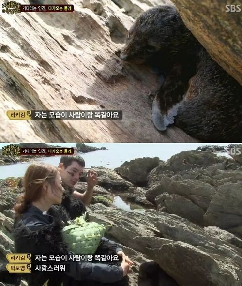 이날 박보영과 리키김은 강아지같은 귀여움을 뽐내는 물개들과 친해지기 위해 그들의 옆에서 조용히 기다렸다.