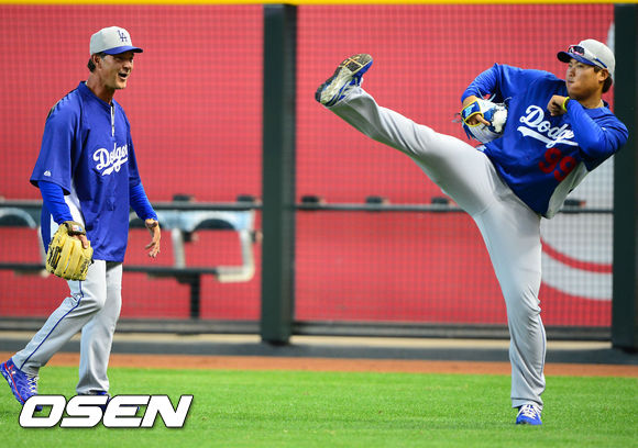 13일 오전(이하 한국시간) 미국 애리조나주 피닉스 체이스필드에서 애리조나 다이아몬드백스와 LA 다저스의 경기가 열릴 예정인 가운데 양 팀 훈련시간을 가졌다.