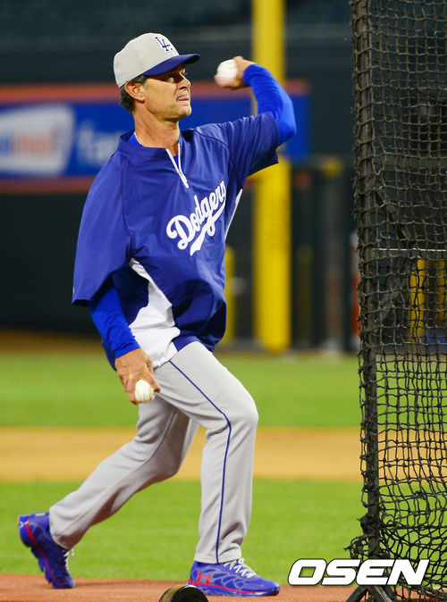 경기 전 LA 다저스 돈 매팅리 감독이 배팅볼을 던져주고 있다. / rumi@osen.co.kr