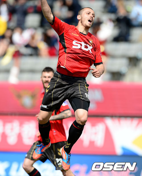 전반 경남 보산치치가 선제골을 성공시키고 기뻐하고 있다.