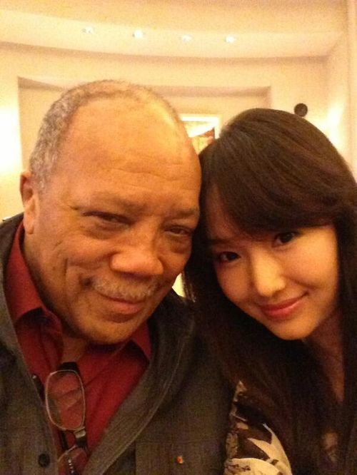 이정현은 13일 자신의 트위터에 "나의 영웅! 마이클 잭슨의 퀸시 존스! 퀸시 집에 초대 받았어요! 이런 영광이!"라는 글과 함께 사진을 올렸다.