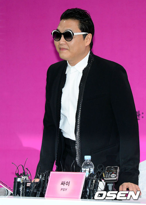 싸이가 13일 오후 서울월드컵경기장에서 열리는 단독 콘서트 '해프닝'에 앞서 열린 기자회견에 참석하고 있다.