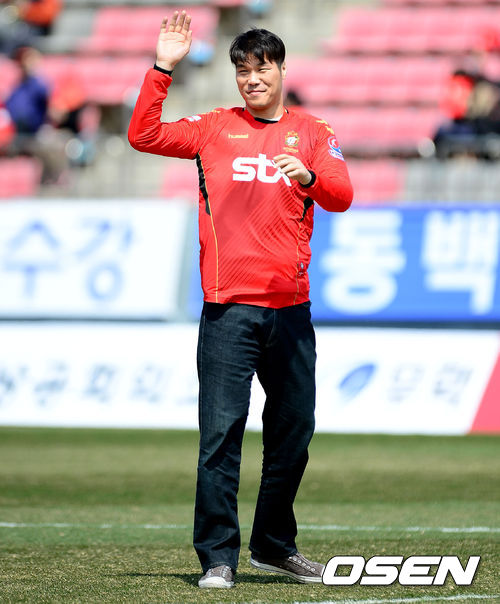 올시즌 은퇴한 '국보급 센터' 서장훈이 시축에 앞서 팬들에게 인사를 하고 있다./jpnews@osen.co.kr