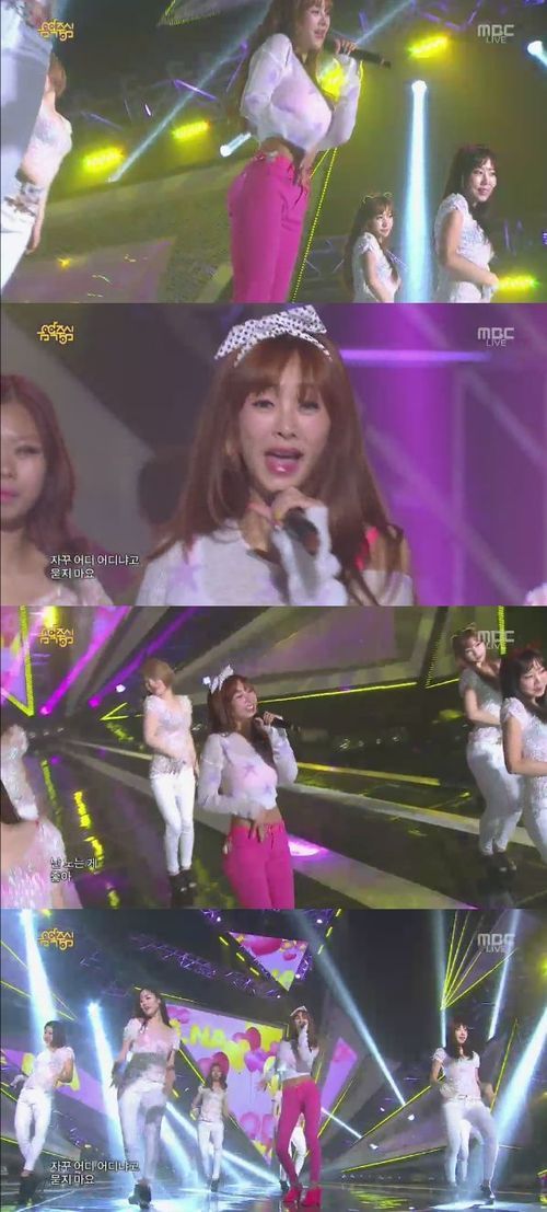 이날 핑크색 스키니 바지와 힐을 신고 무대에 선 지나는 뛰어난 몸매와 애교있는 동작으로 섹시한 매력을 드러냈다.
