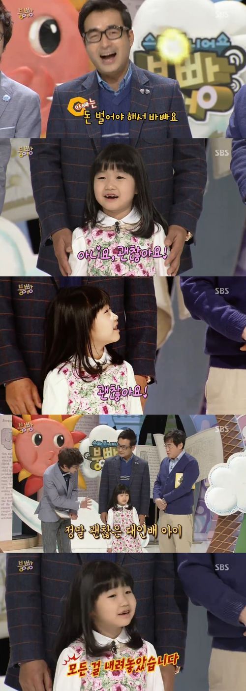 딸의 대답에 배동성은 "수빈이는 웬만하면 다 괜찮다고 한다. 원하는 인형이 없을 때도 떼쓰지 않고 괜찮다고 한다"고 말했다.