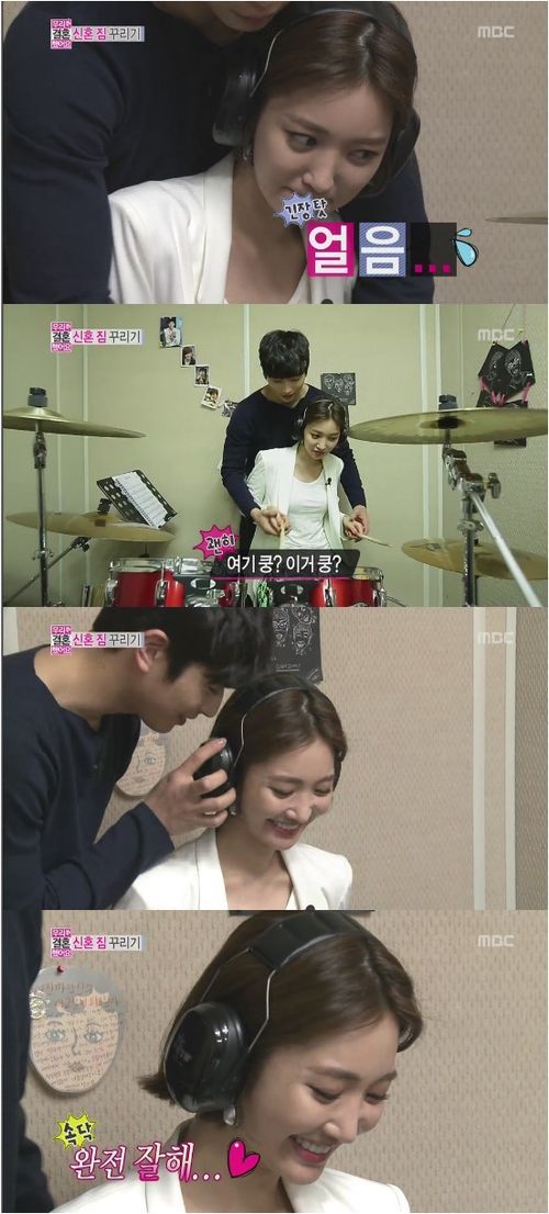 가상부부 정진운과 고준희가 드럼 연주 중 백허그와 귓속말을 하며 스킨십 진도를 나갔다.