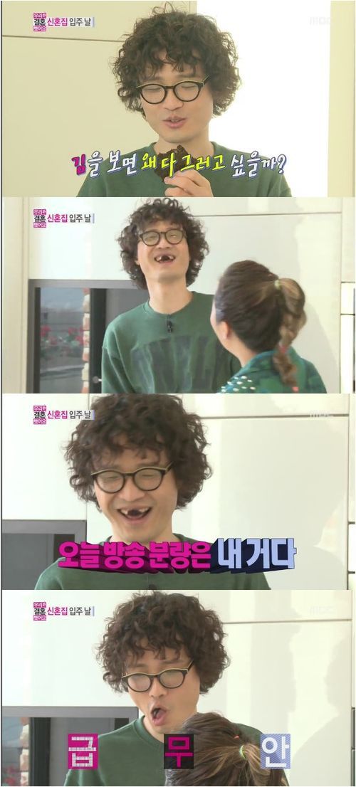 조정치는 13일 방송된 MBC 예능프로그램 ‘우리 결혼했어요 시즌 4’(이하 ‘우결4’)에서 신혼집에 입주한 후 김을 발견하자 만지작거렸다. 정인은 “이빨에 김 붙지 않게 조심해”라고 주의를 줬고 조정치는 “사람은 다 그럴까?”라면서 영구 변신에 욕심을 보였다.