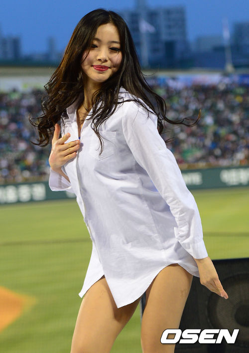 13일 오후 서울 잠실야구장에서 '2013 한국야쿠르트 세븐 프로야구' 두산 베어스와 롯데 자이언츠의 경기가 열렸다. 두산 치어리더가 멋진 응원을 펼치고 있다.