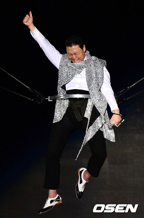 싸이가 13일 오후 서울월드컵경기장에서 열린 단독 콘서트 '해프닝'에서 공연을 펼치고 있다.