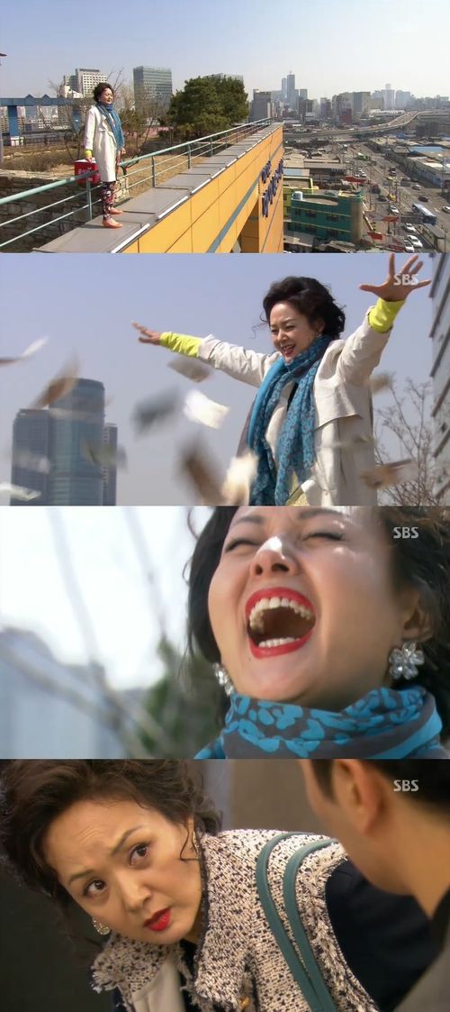 13일 방송된 SBS 주말드라마 '원더풀 마마'(극본 박현주, 연출 윤류해) 1회분에서는 어떤 이유에서인지 윤복희(배종옥 분)가 옥상에서 돈을 뿌리는 내용이 그려졌다.