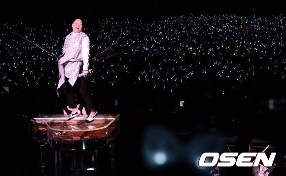 싸이가 13일 오후 서울월드컵경기장에서 열린 단독 콘서트 '해프닝'에서 공연을 펼치고 있다.