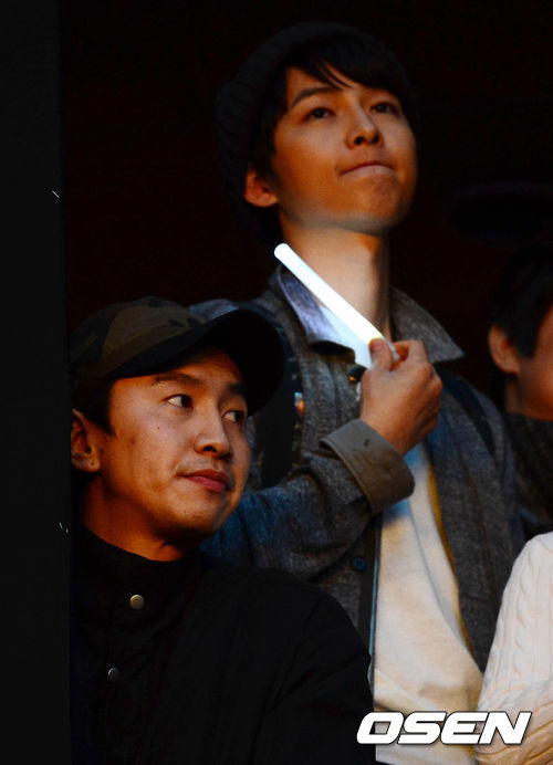 송중기-이광수가 13일 오후 서울월드컵경기장에서 열린 싸이 단독 콘서트 '해프닝'을 관람하고 있다.