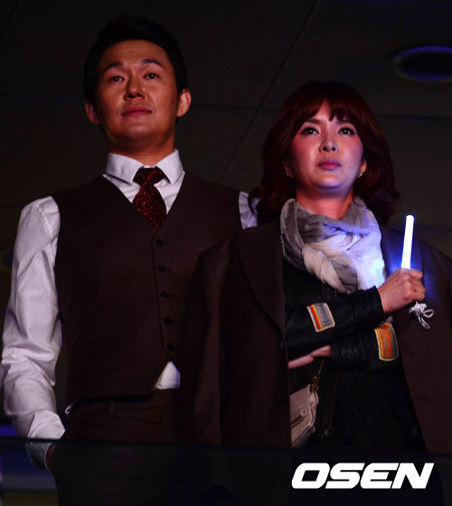 신은정 박성웅이 13일 오후 서울월드컵경기장에서 열린 싸이 단독 콘서트 '해프닝'을 관람하고 있다.