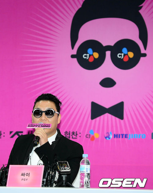 싸이는 콘서트에 앞서 오후 4시에는 '해프닝'의 공연 장소인 서울 상암동 월드컵 경기장 내부에서 국내외 취재진 500여 명과 기자간담회를 갖고 '강남스타일'에 이은 '젠틀맨'을 발표한 소감을 밝혔다. 싸이는 글로벌 매니지먼트를 맡고 있는 스쿠터브라운과 함께 자리해 "신곡 '젠틀맨'에 부담을 갖지 않으려고 했지만 그게 잘 안됐다. 사실 굉장히 부담을 많이 갖고 작업한 곡이다"라며 "외국인들도 쉽게 따라할 수 있도록 한국어 중 된소리가 세지 않은 단어들을 고르려고 애썼다"고 밝혔다.