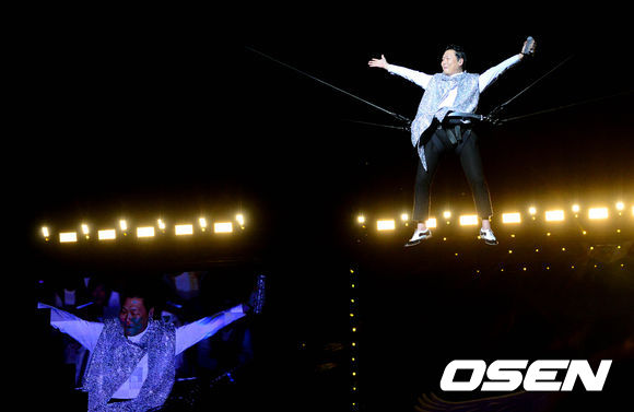 싸이는 공연의 신답게 관객들이 예상치 못한 다양한 무대 구성으로 감동을 안기기도 했다. 그는 곡 '낙원'과 '거위의 꿈'을 통해 대형 와이어로 무대 곳곳을 날아다니며 먼 곳에 위치한 관객에게 다가갔다. 그는 관객의 함성을 가까이서 들으며 엄지 손가락을 치켜세웠고 팬들의 함성에 감격하는 모습을 보였다. 팬들의 사랑을 가까이서 느끼던 싸이는 결국 공연장 상공에서 뜨거운 눈물을 흘렸다.