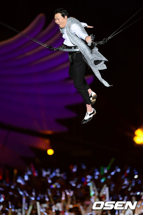 싸이가 13일 오후 서울월드컵경기장에서 열린 단독 콘서트 '해프닝'에서 공연을 펼치고 있다.