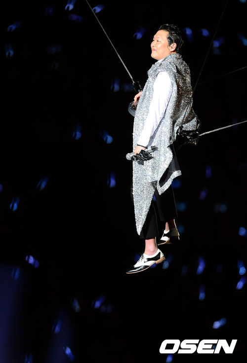싸이가 13일 오후 서울월드컵경기장에서 열린 단독 콘서트 '해프닝'에서 공연을 펼치고 있다.