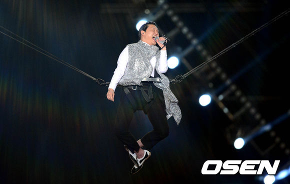싸이가 13일 오후 서울월드컵경기장에서 열린 단독 콘서트 '해프닝'에서 공연을 펼치고 있다.