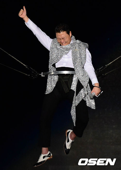 싸이가 13일 오후 서울월드컵경기장에서 열린 단독 콘서트 '해프닝'에서 공연을 펼치고 있다.