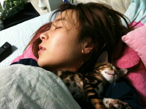최강희는 14일 오전 자신의 트위터에 “잘 자요들. 잘 자 슈퍼스타(고양이 이름)”이라는 글과 함께 한 장의 사진을 게재했다.