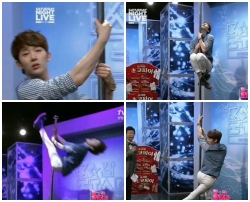 조권은 봉을 잡고 섹시한 표정을 짓는가 하면, 가볍게 몸을 날려 봉을 오르내리는 등 특유의 예능감을 십분 발휘했다.