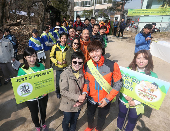 특히 김종국은 SBS 예능 프로그램 런닝맨을 연상시키는 ‘피버그린맨’ 퀴즈 이벤트를 벌여 참가자들을 즐겁게 했다. 등산로 입구에서 등산객을 대상으로 악수 릴레이도 열었는데 악수한 사람의 수만큼 환경보전기금이 국립공원관리공단에 기부되는 의미가 담겼다.