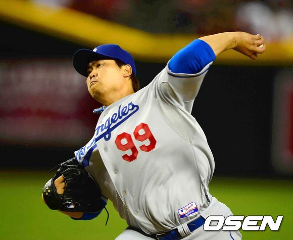 14일 오전(이하 한국시간) 미국 애리조나주 피닉스 체이스필드에서 벌어진 애리조나 다이아몬드백스와 LA 다저스의 경기 7회말 마운드에 오른 류현진이 역투하고 있다.