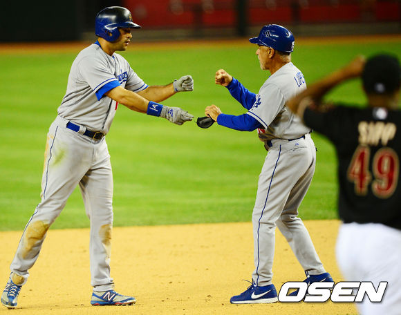 9회초 무사 주자 없는 상황에서 좌중간 2루타를 날린 이디에가 기뻐하고 있다. / rumi@osen.co.kr