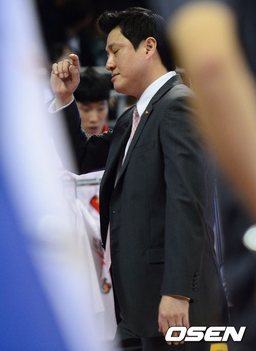2쿼터 종료 후 SK 문경은 감독이 아쉬운 표정으로 코트를 나서고 있다.