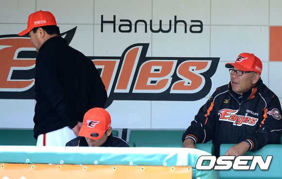 1회초 1실점을 허용한 한화 김응룡 감독이 아쉬운 표정을 짓고 있다.