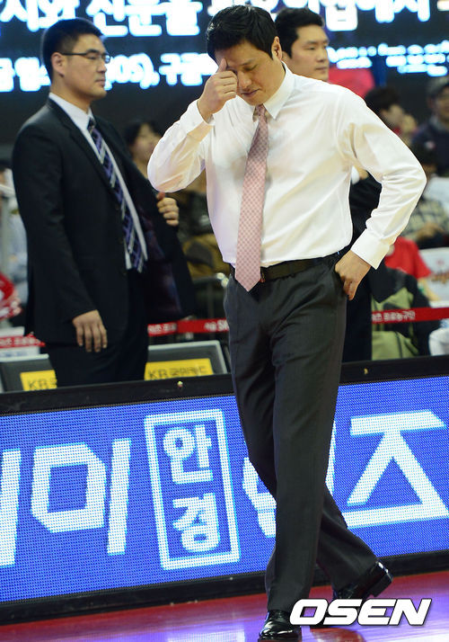 3쿼터, SK 문경은 감독이 경기를 지켜보며 생각에 잠겨있다.