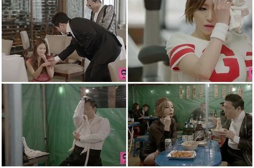 '강남 스타일'에서는 현아가 코믹하게 말춤을 추는 모습으로 남심을 흔들었고, '젠틀맨'에서는 싸이가 가인의 몸을 노골적으로 훑어 내리는 시선으로 묘한 상상을 자극하는 중이다.