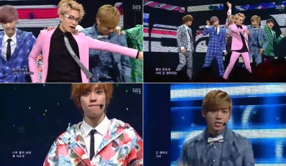 아이돌그룹 틴탑이 '긴 생머리 그녀'의 굿바이 무대에서 컬러풀한 수트로 상큼한 매력을 뽐냈다.