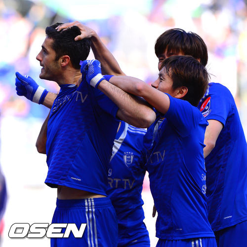 14일 오후 수원월드컵경기장에서 열린 현대오일뱅크 K리그 클래식 2013 수원 삼성과 FC서울의 경기, 후반 수원 라돈치치가 동점골을 넣고 환호하고 있다