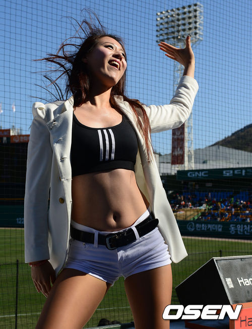 한화 치어리더 강보경이 멋진 무대를 선보이고 있다.