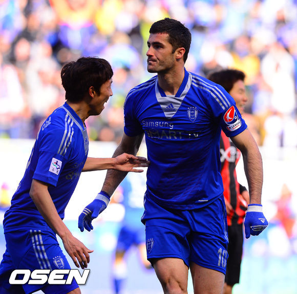 수원 블루윙즈는 14일 수원월드컵경기장에서 열린 현대오일뱅크 K리그 클래식 2013 6라운드 FC서울과 홈 경기서 후반 42분 터진 라돈치치의 극적 동점골에 힘입어 1-1 무승부를 거뒀다.