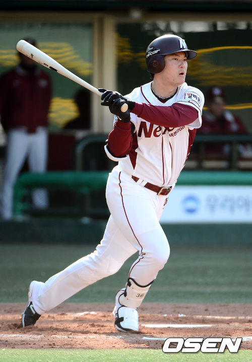 14일 오후 서울 목동구장에서 열린 '2013 한국야쿠르트 세븐 프로야구' 넥센 히어로즈와 삼성 라이온즈의 경기 6회말 무사 넥센 이성열이 2루타를 때리고 있다.