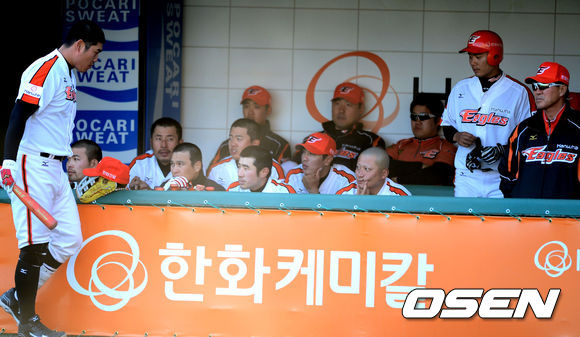 한화는 14일 대전구장에서 열린 ‘2013 한국야쿠르트 세븐 프로야구’ LG와 주말 3연전 마지막 경기서 0-8로로 영봉패했다. 한화는 이날도 마운드 총력전을 펼쳤지만 1회부터 선취점을 내줬고 LG 선발투수 우규민에게 타선이 침묵하며 일방적으로 경기를 내줬다.