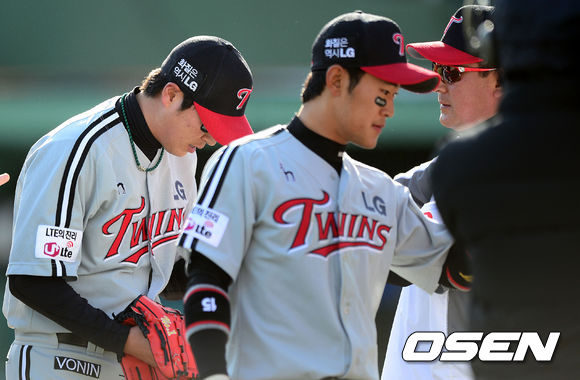 LG 우규민이 완봉으로 승리를 장식하며 김기태 감독의 격려를 받고 있다./jpnews@osen.co.kr