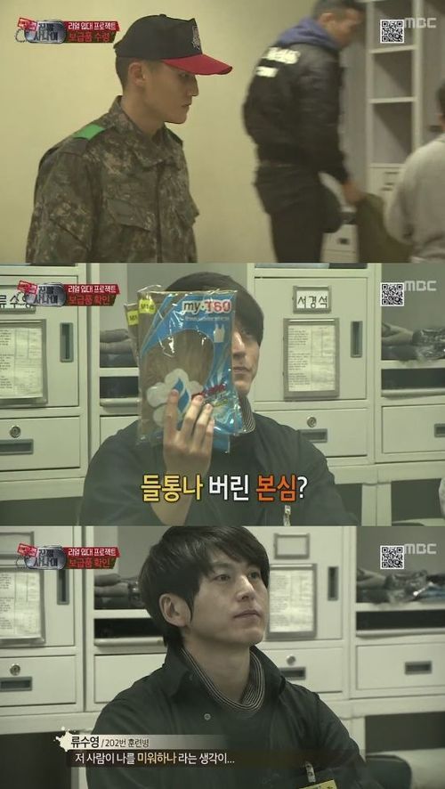 이날 류수영을 비롯한 멤버들은 군에서 지급한 보급품을 확인하는 과정을 거쳤다. 분대장은 차가운 목소리로 보급품을 빠짐없이 받았는지 확인하라고 했고, 류수영은 불만 가득한 표정으로 임햇다.