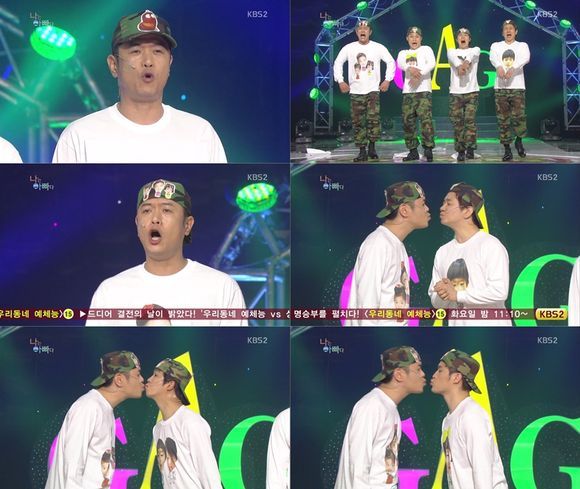 이후 박성호와 거침없는 뽀뽀를 한 김대희는 아이로 변신한 홍인규의 “아빠 저도 뽀뽀해주세요”라는 말에 다시 뽀뽀를 했고 이후에도 송준근, 박성호와 연이어 4차례 뽀뽀를 하는 모습으로 환호와 박수를 이끌어냈다.