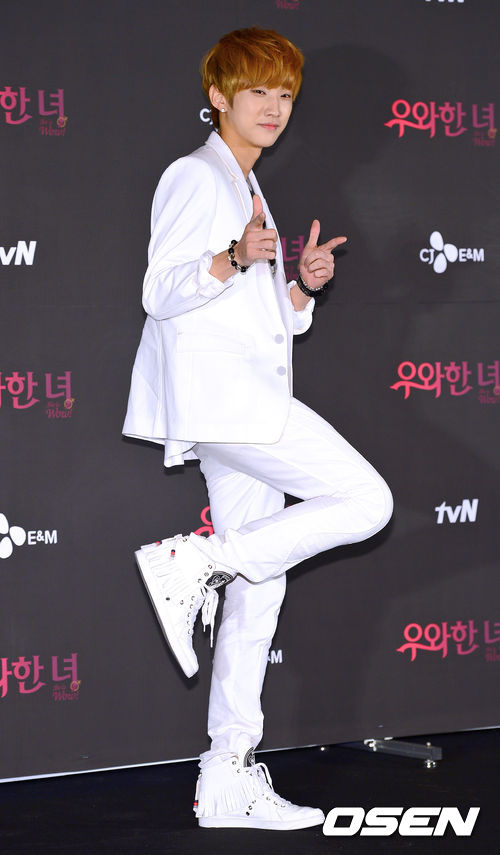15일 오후 서울 상암동 CJ E&M에서 진행된 tvN 새 드라마 '우와한 녀' 제작발표회에서 B1A4 진영이 포즈를 취하고 있다