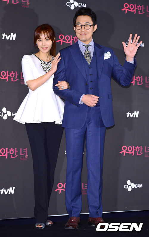 15일 오후 서울 상암동 CJ E&M에서 진행된 tvN 새 드라마 '우와한 녀' 제작발표회에서 오현경과 박성웅이 포즈를 취하고 있다