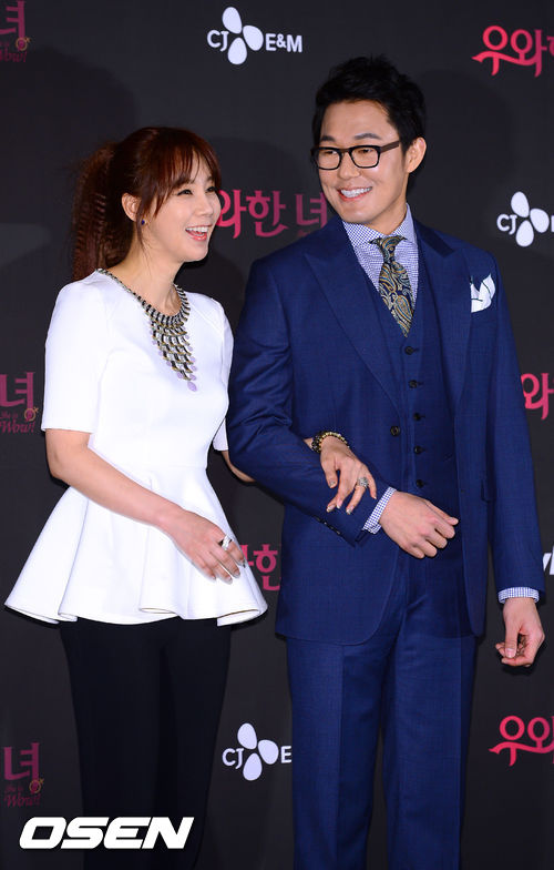 15일 오후 서울 상암동 CJ E&M에서 진행된 tvN 새 드라마 '우와한 녀' 제작발표회에서 오현경과 박성웅이 포즈를 취하고 있다