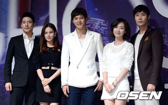 15일 오후 서울 플라자호텔에서 진행된 2013 뮤지컬 '고스트' 제작발표회에서 김준현, 아이비, 주원, 박지연, 김우형이 포토타임을 갖고 있다.