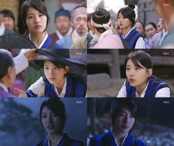 이날 방송에서 수지는 길거리에서 최강치(이승기 분)에 대한 이야기를 듣는 모습으로 첫 등장을 알렸다. 를 강에서 주워 키운 박무솔(엄효섭 분)의 이야기를 듣던 중 손을 들고 "그럼 강에서 주워 키운 강치라는 아이는 어찌 됐소"라며 말문을 연 것.